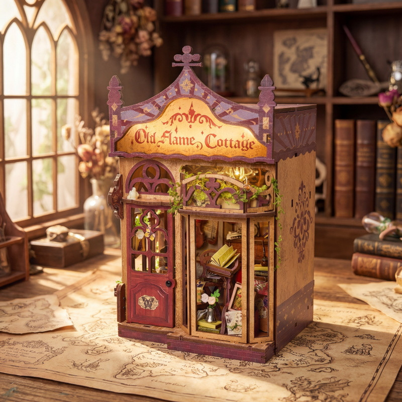 Book nook je mini diorama vložené mezi knihy na polici – dekorace, která vytváří iluzi malého světa ukrytého mezi hřbety knih. Oživí vaši knihovnu a přenese vás do jiného času i prostoru. Chaloupka staré lásky představuje útulný domov plný detailů, světla a klidu. Nostalgická atmosféra a jemné zpracování vytvářejí harmonický celek, který působí jako živý příběh ukrytý mezi knihami.