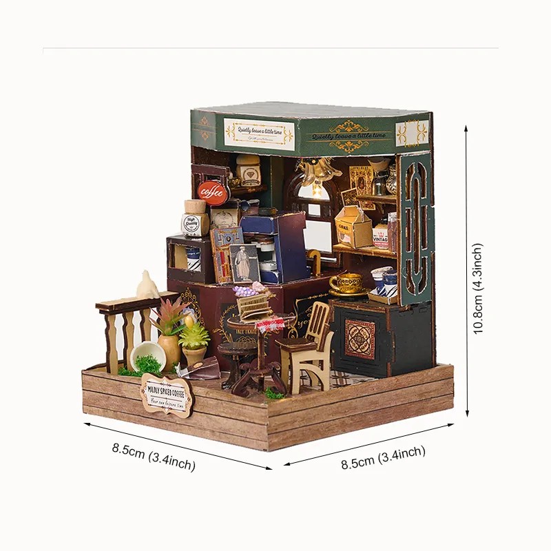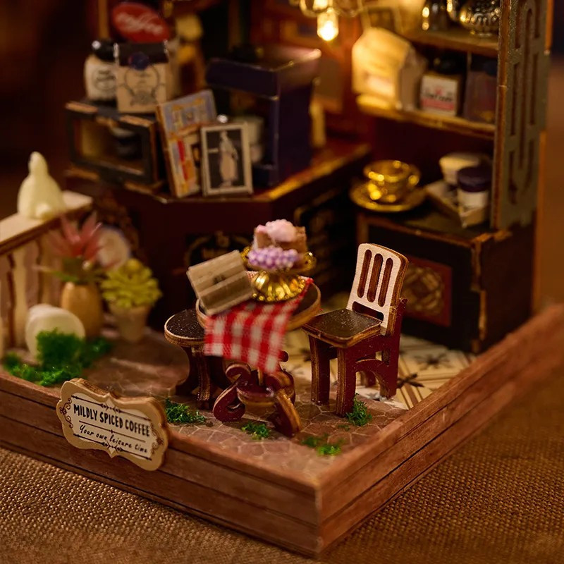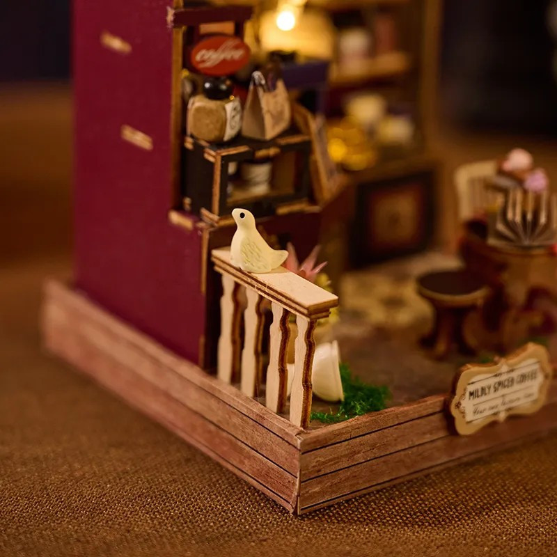 ☕V malém koutku, kde se line vůně čerstvě připravené kávy a světlo lampy jemně osvětluje police plné hrnečků a dóz, vzniká prostor plný klidu a harmonie. Koutek voňavé kávy zachycuje atmosféru tichého posezení, kde si můžete vychutnat okamžik jen pro sebe. Každý detail tohoto diorama – od drobných doplňků až po útulné zařízení – vytváří pocit skutečné kavárny v miniatuře. Rostliny, dřevěné prvky a teplé světlo dodávají celé scéně hřejivý a přívětivý charakter. Po sestavení se stane krásnou dekorací, která vnese do interiéru pohodu, klid a vůni imaginární kávy.