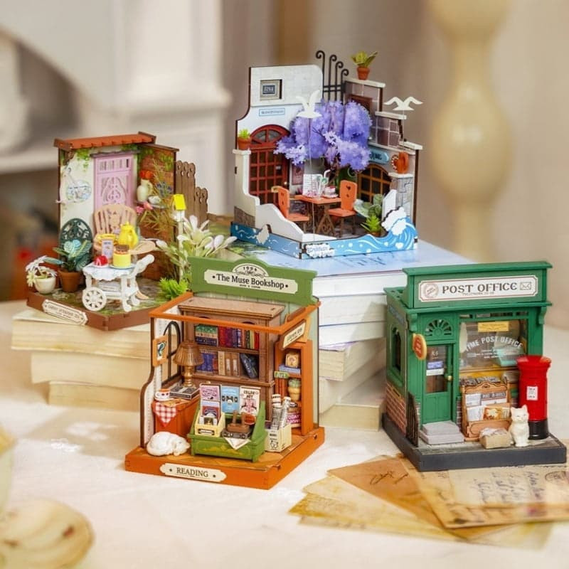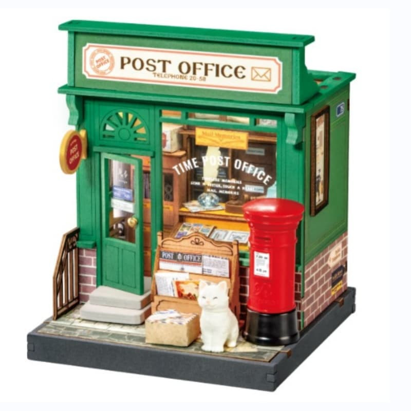📮🐱📚 Pošta starých časů ukrývá klidné místo, kde se psaly dopisy, vyprávěly příběhy a čas plynul pomaleji. Tato roztomilá miniatura vás zavede do útulné pošty plné detailů, která po sestavení oživí vaši knihovnu jemnou vintage atmosférou.