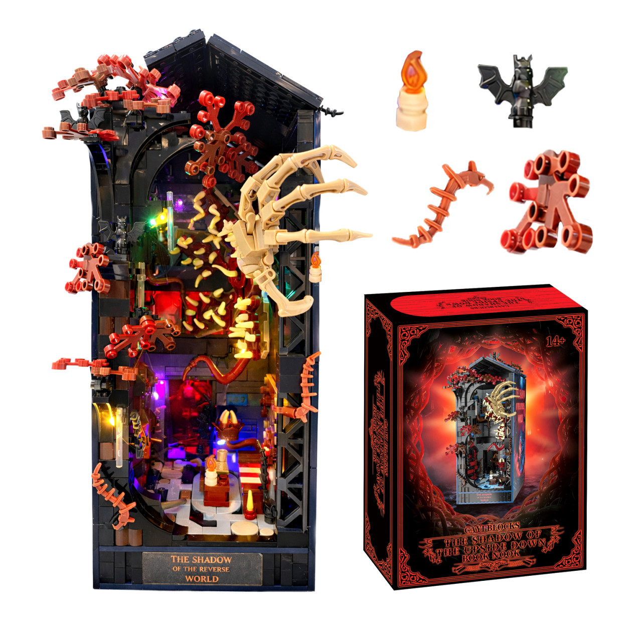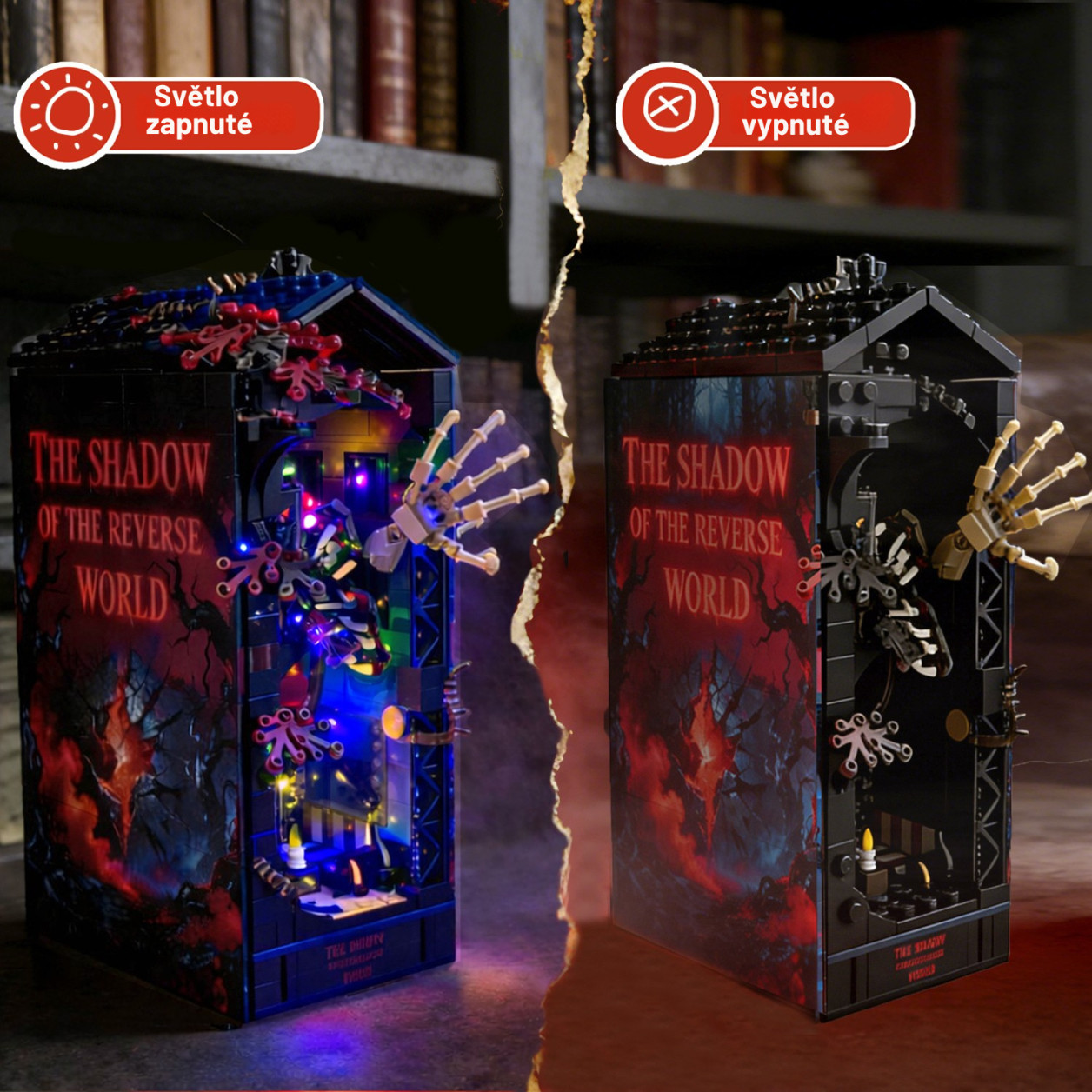 Otevíratelný design – lze otevřít jako knihu a odhalit celý svět Po zavření funguje jako klasický book nook mezi knihami 📚 ABS stavebnice bez lepení – pevná a přesná konstrukce Motiv paralelního / obráceného světa. Silná atmosféra temna, světel a kontrastů