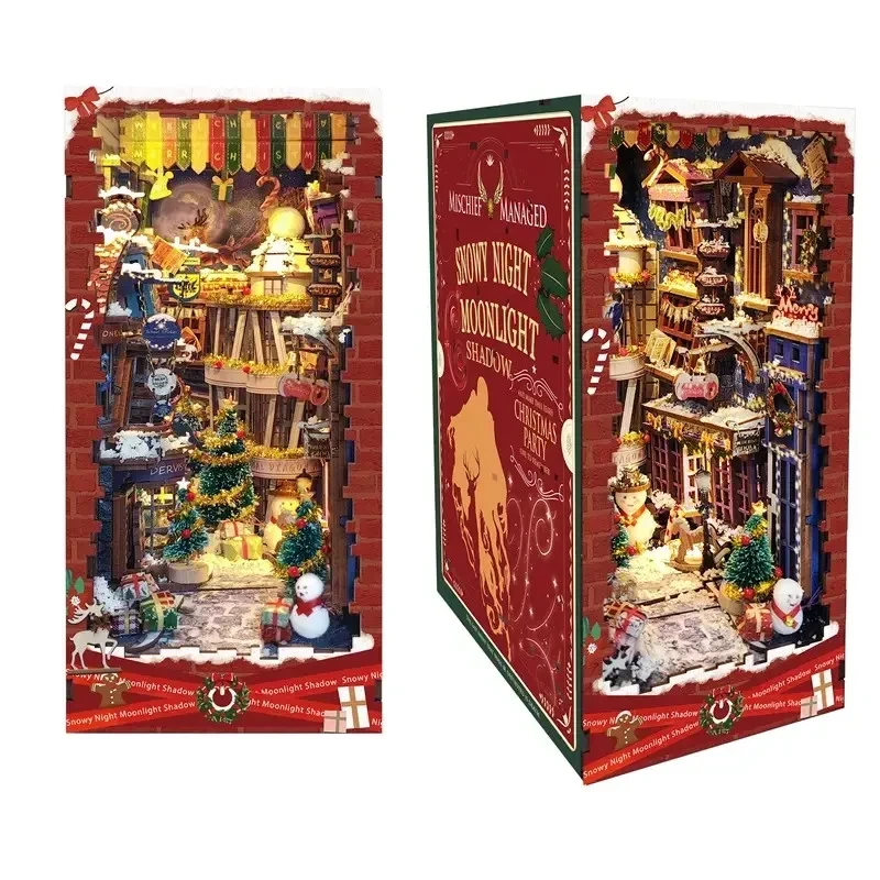 Elegantní Book Nook nabízí magický zážitek a estetický doplněk vašeho interiéru. Laserem přesně řezané dílky z ekologického MDF dřeva zapadají bez potřeby lepidla či nástrojů. 🎨📏. Výsledná scénka zachycuje zasněženou noc osvětlenou měsíčním svitem – působivý dekor na poličku, pracovní stůl či okenní parapet. Puzzle uvolňuje mysl, rozvíjí jemnou motoriku a přináší uklidňující chvilky tvoření 🌌. Přírodní materiály bez chemie dělají z tohoto puzzle ideální volbu pro ekologicky citlivý domov. 🌱
