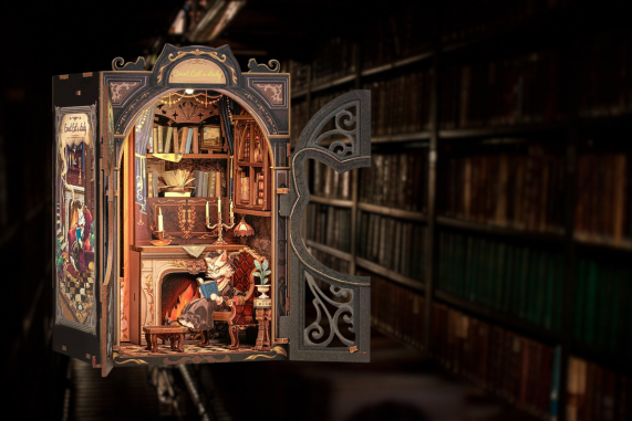 Book nook je především modelářská stavebnice. Po jejím sestavení je ale bude sloužit jako dekorativní prvek, který se umisťuje do knižního regálu nebo na knihovnický stolek a vytváří tak iluzi malého 3D světa uvnitř knihy s hlubokým příběhem. Přidává tak šmrnc do celkového vzhledu knihovničky.
