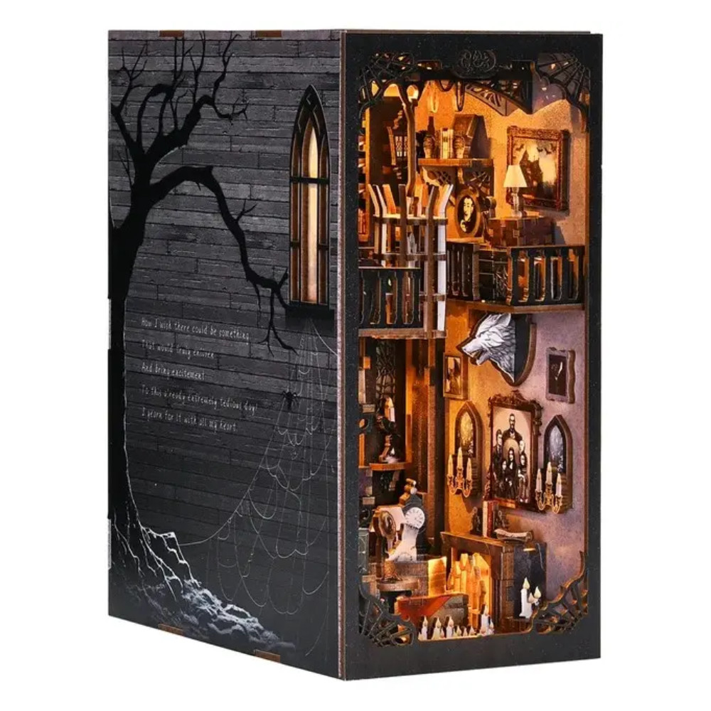 Book nook je především modelářská stavebnice. Po jejím sestavení je ale bude sloužit jako dekorativní prvek, který se umisťuje do knižního regálu nebo na knihovnický stolek a vytváří tak iluzi malého 3D světa uvnitř knihy s hlubokým příběhem. Přidává tak šmrnc do celkového vzhledu knihovničky.