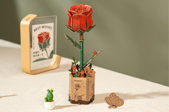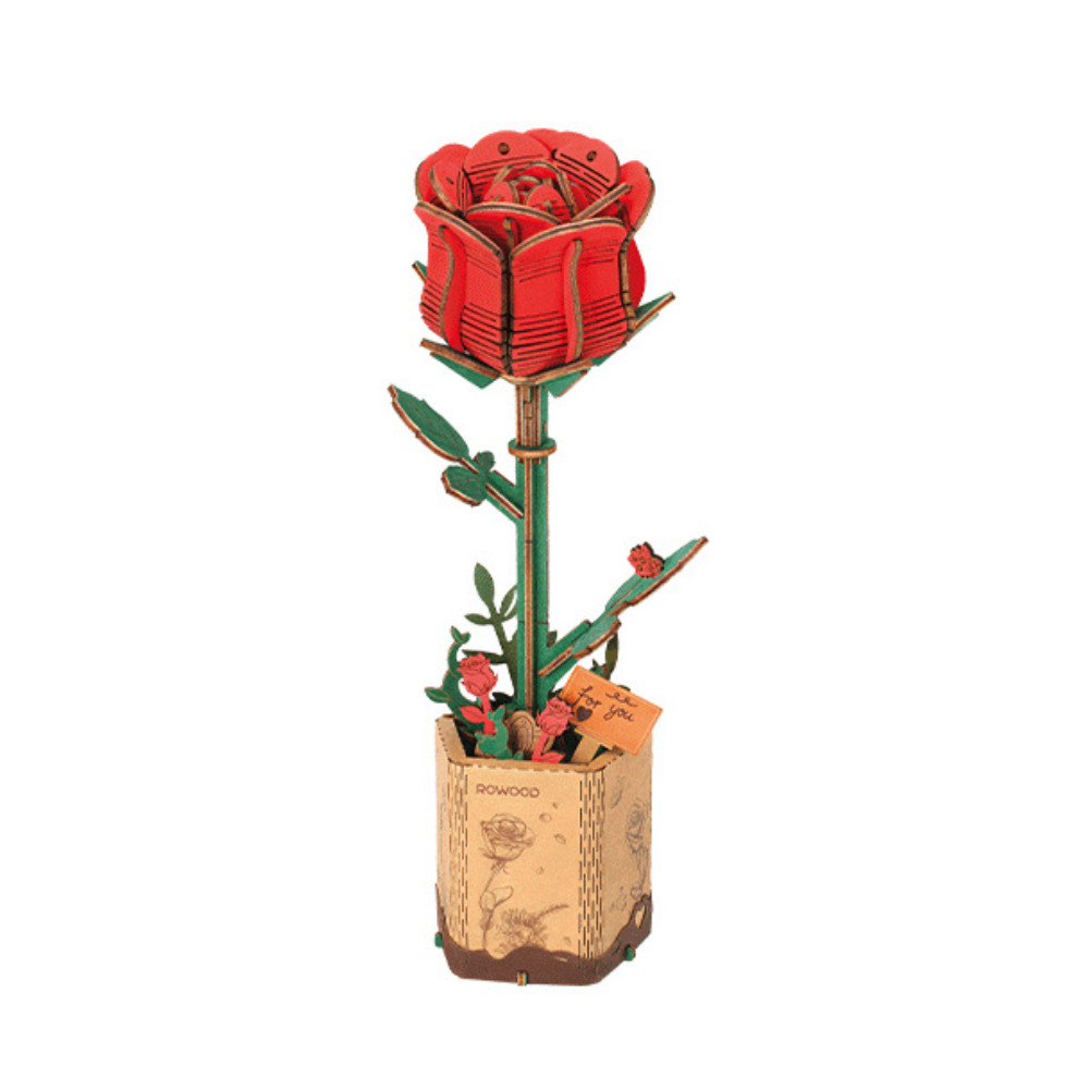 Kouzlo růže, která nikdy neuvadne. Tento model růže s realistickým dřevěným designem květináče je dokonalou volbou pro ty, kteří hledají jedinečný a smysluplný dárek. Tyto dřevěné květy představují lásku a romantiku, která přetrvá navzdory času.