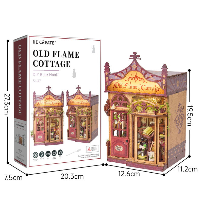 Book nook je mini diorama vložené mezi knihy na polici – dekorace, která vytváří iluzi malého světa ukrytého mezi hřbety knih. Oživí vaši knihovnu a přenese vás do jiného času i prostoru. Chaloupka staré lásky představuje útulný domov plný detailů, světla a klidu. Nostalgická atmosféra a jemné zpracování vytvářejí harmonický celek, který působí jako živý příběh ukrytý mezi knihami.