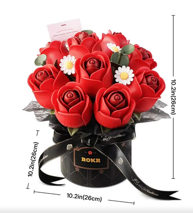 ROKR Red Roses je elegantní dekorativní kytice, která spojuje romantiku květin s radostí z vlastního tvoření. Jde o nadčasový květinový aranžmá červených růží, které nikdy neuvadnou a zůstanou krásnou vzpomínkou na chvíle, kdy vznikaly. Každý detail kytice v sobě nese myšlenku trvalé lásky, péče a osobního doteku.