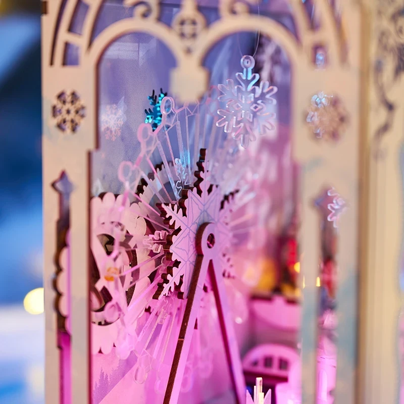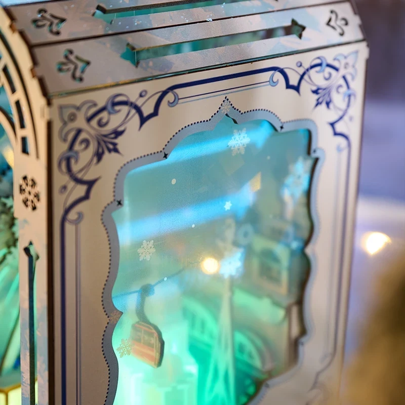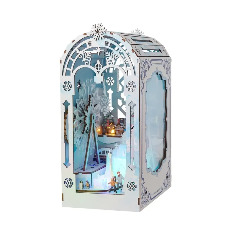 Hledáte místo, kde se mráz proměňuje v kouzlo? Nechte se vtáhnout do tichého zimního snu, kde světla tančí po střechách a každý detail dýchá ledovým klidem. Book Nook Ledové městečko od IIECREATE je malý zázrak mezi knihami – miniaturní krajina, v níž čas zpomalí a mráz rozzáří fantazii. Z precizně laserem řezaných dřevěných dílů vzniká snová scenérie plná domků, lamp a drobných dekorací, které pod jemným LED osvětlením ožívají jako město ve světle zimního soumraku. Každý kousek se spojuje v jedinečný celek, který rozvíjí trpělivost, jemnou motoriku i estetické cítění.