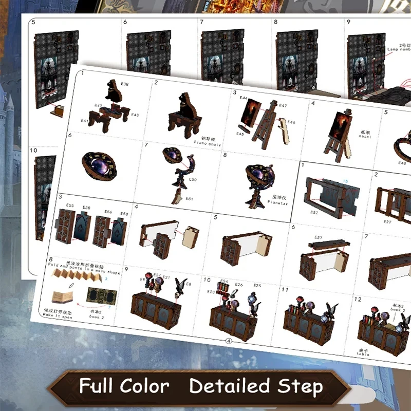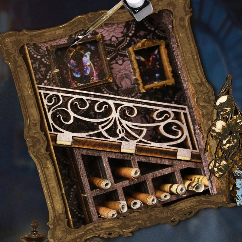 ✨ Přeneste se do období středověké gotiky. Tato 3D dřevěná scéna obsahuje detailní prvky – vitrážová „okna“, elegantní pianino 🎹, magický vozík, sovu 🦉 a další gotické motivy. Světlo s pohybovým senzorem 💡 zajišťuje tajemnou atmosféru.