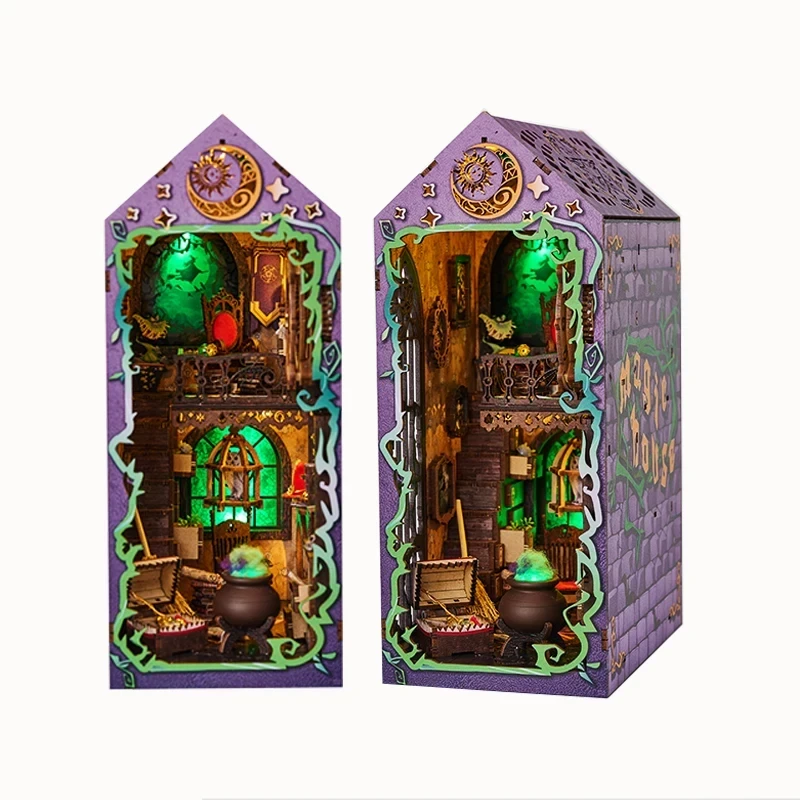 Vyroben z ekologického dřeva/MDF, nechybí tištěné vzory s bohatým ornamentálním dekorem a překvapivými magickými doplňky. Součástí je také LED osvětlení pro vytvoření tajemné nálady. Dodává se jako DIY kit: jednotlivé vyřezané díly, návody, osvětlení. Nejsou zahrnuty baterie (3×AA/AAA) a lepidlo — je třeba zajistit samostatně.